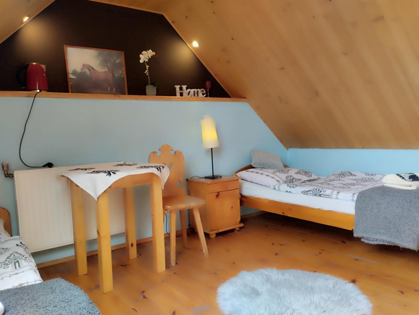 Pokój z 2 łóżkami pojedynczymi i widokiem na góry. The twin room features heating, as well as a private bathroom featuring a shower. The twin room provides a TV, a seating area, a dining area, an electric kettle as well as mountain views. The unit offers 2 beds. Pokój z 2 łóżkami pojedynczymi - 2 osobowy. Powierzchnia pokoju ok.: 15 mkw. ;