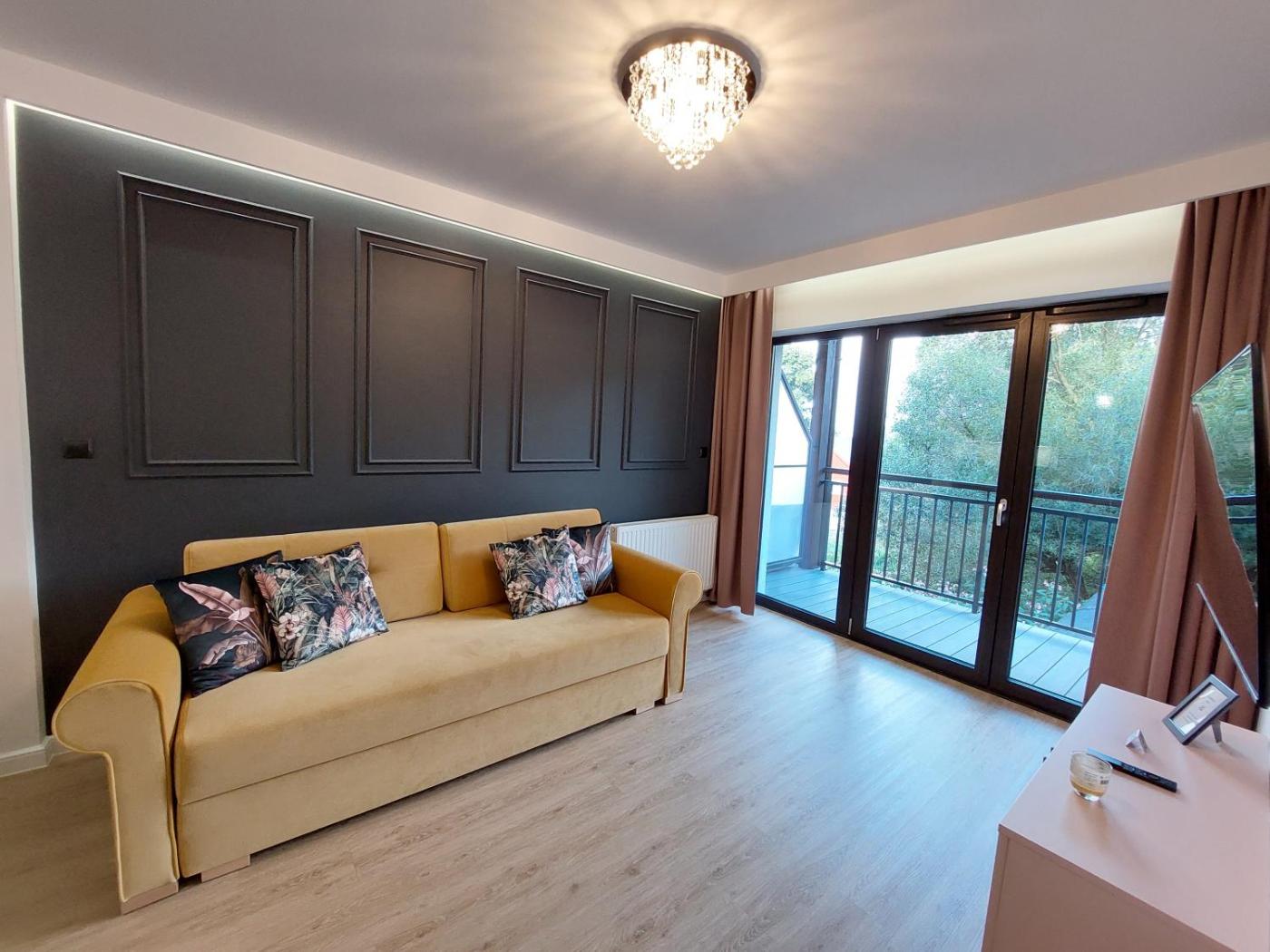 Apartament z balkonem. This apartment consists of 1 living room, 1 separate bedroom and 1 bathroom with a shower and a hairdryer. The fully equipped kitchenette features a stovetop, a refrigerator, a dishwasher and kitchenware. Featuring a balcony with garden views, this apartment also provides a washing machine and a flat-screen TV with cable channels. The unit offers 2 beds. Apartament - 4 osobowy. Powierzchnia pokoju ok.: 45 mkw.