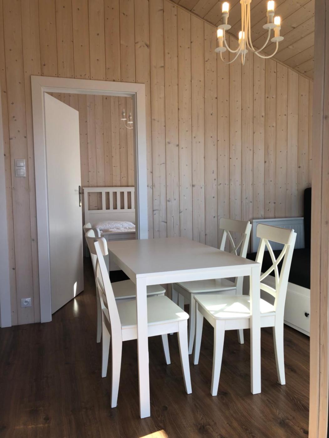 Dom z 2 sypialniami. Ten dom wakacyjny z prywatnym wejściem mieści salon, 2 oddzielne sypialnie oraz łazienkę z prysznicem. W kompletnie wyposażonej kuchni przygotowano płytę kuchenną, lodówkę, zmywarkę do naczyń oraz przybory kuchenne. Goście mogą korzystać z grilla. Udogodnienia obejmują część wypoczynkową, telewizor z płaskim ekranem oraz taras z widokiem na jezioro. W tej opcji zakwaterowania dostępne są 4 łóżka. Dom wakacyjny - 6 osobowy. Powierzchnia pokoju ok.: 50 mkw. ;